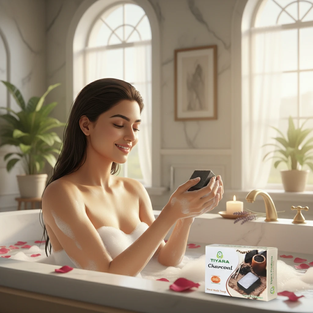 Pamper Your Skin Naturally: Indulge in the ultimate skincare routine with our Charcoal Lavender Handmade Soap. Detoxify, refresh, and let your skin breathe with the natural goodness of Tiyara Products.