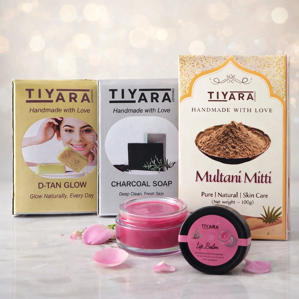 Carefully curated with D-Tan Glow, Charcoal Soap, Multani Mitti, and Lip Balm, this combo provides complete daily care for fresh, healthy, and glowing skin.